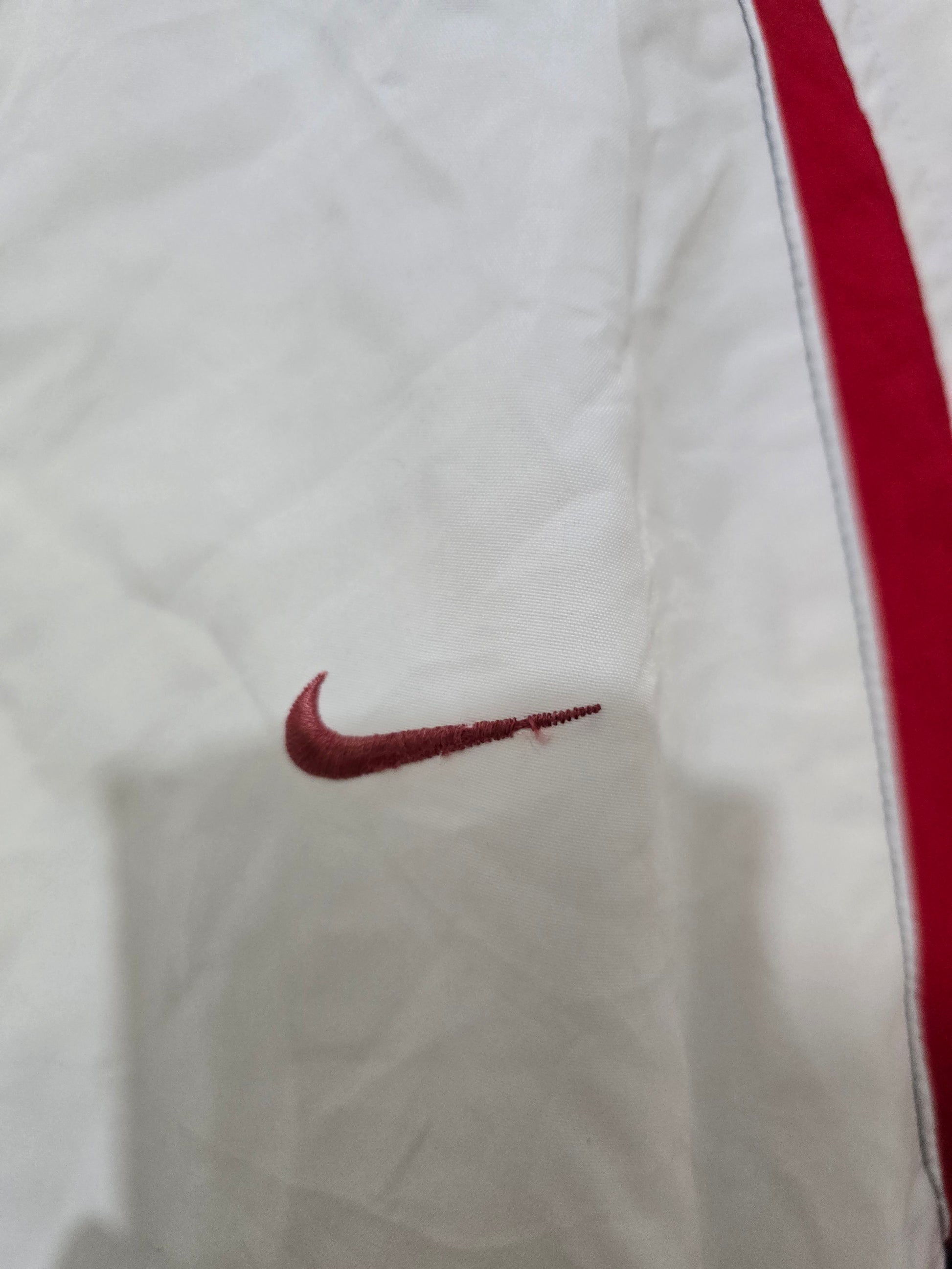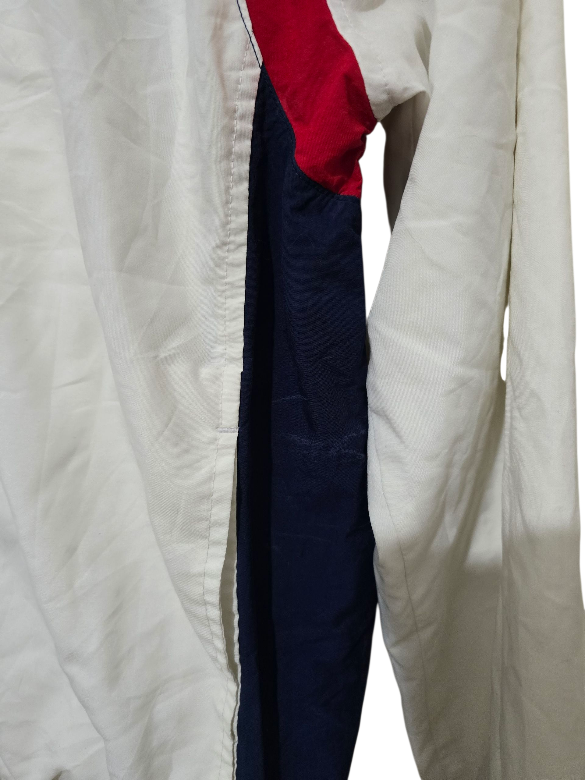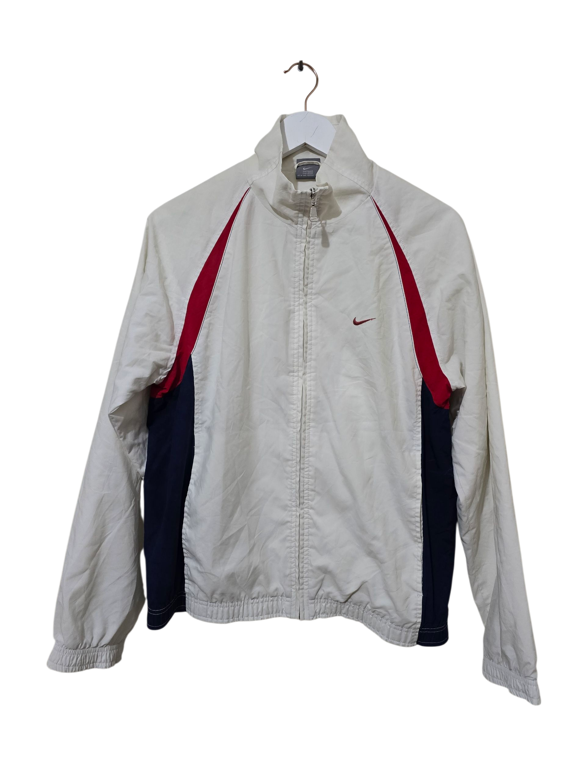 Diese vintage Nike Jacke vereint cleanes Design mit sportlichem Oldschool-Flair. Das Colorblock-Muster in Weiß, Marineblau und Rot verleiht ihr einen klassischen 90s-Vibe – perfekt für sportliche Streetwear-Looks oder entspannte Retro-Outfits.