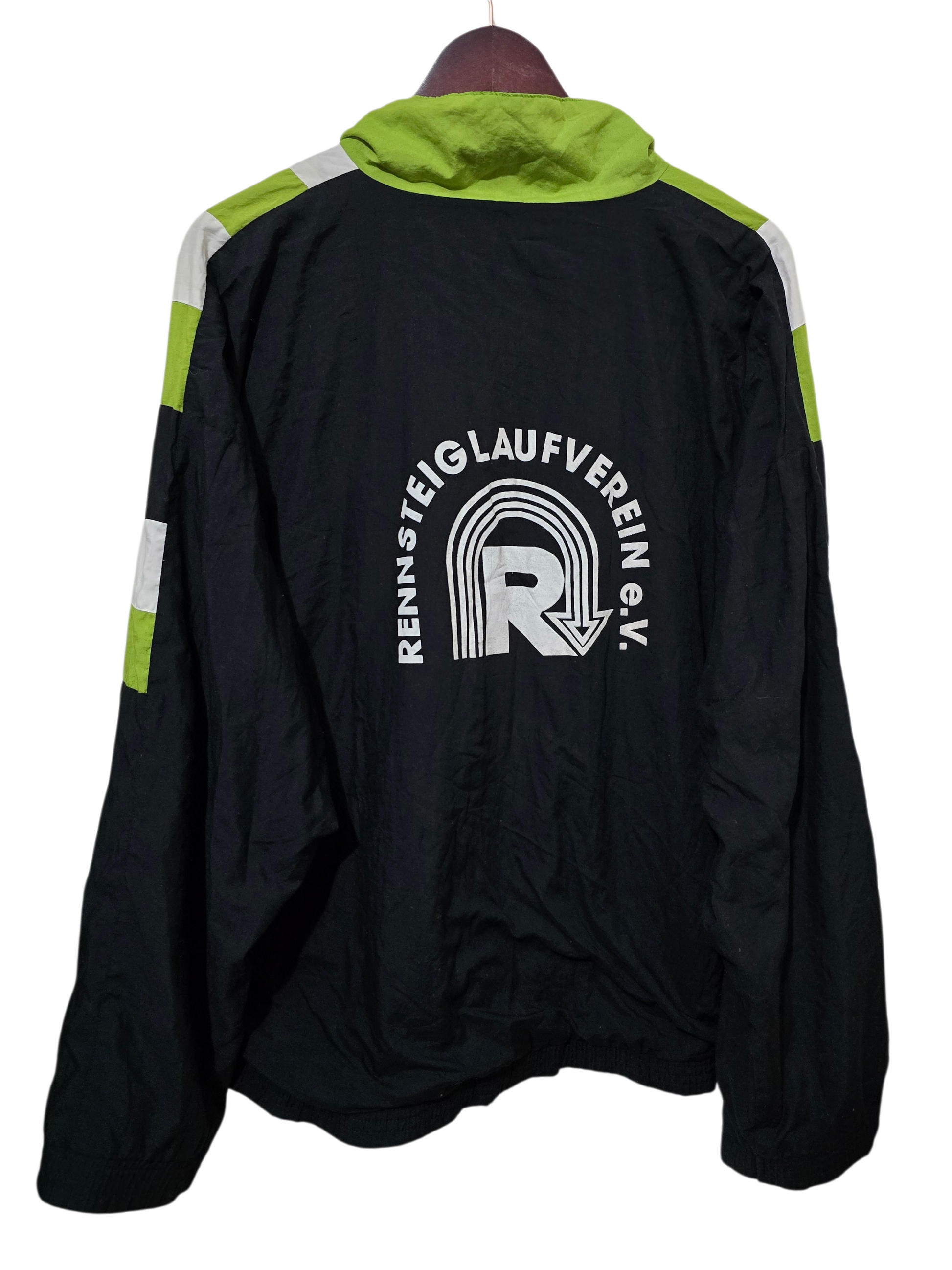 Sportliche Vereins-Jacke des Rennsteiglaufverein e.V. mit auffälligem Rückenprint. Klassisches Colorblocking in Schwarz, Grün und Weiß mit funktionalem Design. Lockerer, oversized Fit – ideal für authentische Sportswear- und Vintage-Looks.