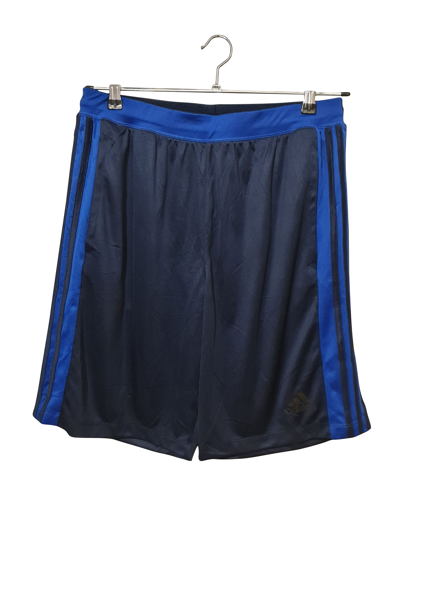 Leichte, glänzende Sportshorts von Adidas in Dunkelblau mit blauen Seitenstreifen – klassisch sportlicher Look mit den ikonischen drei Streifen und einem dezenten Ton-in-Ton-Logo. Der elastische Bund sorgt für optimalen Sitz und hohen Tragekomfort – perfekt für Sport, Sommer oder entspannte Tage.