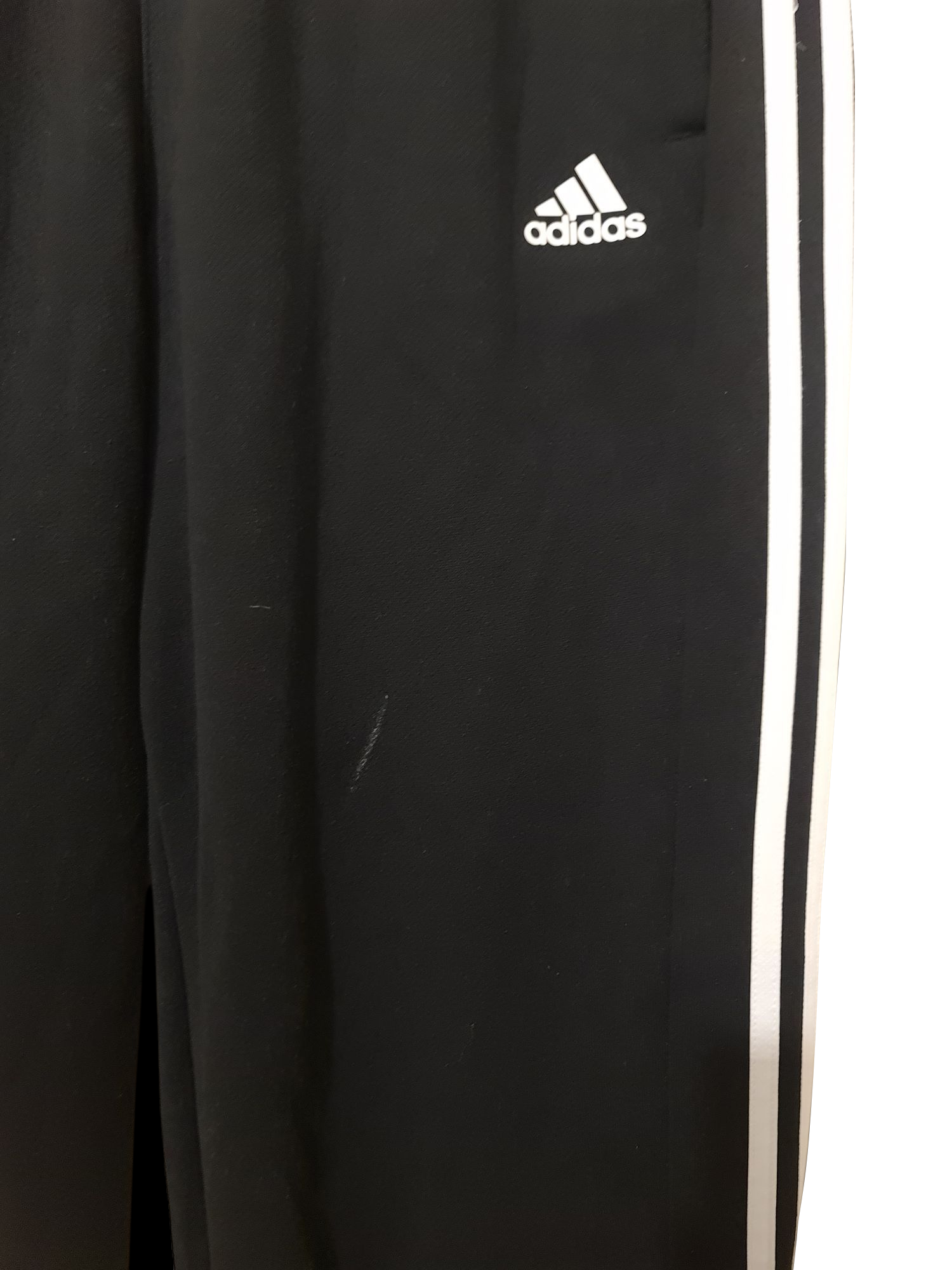 Klassische schwarze Trainingshose von Adidas mit den legendären drei weißen Streifen – sportlich, bequem und vielseitig kombinierbar. Der elastische Bund und die Reißverschlüsse an den Beinabschlüssen sorgen für perfekten Sitz und Funktionalität. Ideal für Sport, Freizeit oder als Teil eines lässigen Streetwear-Looks.