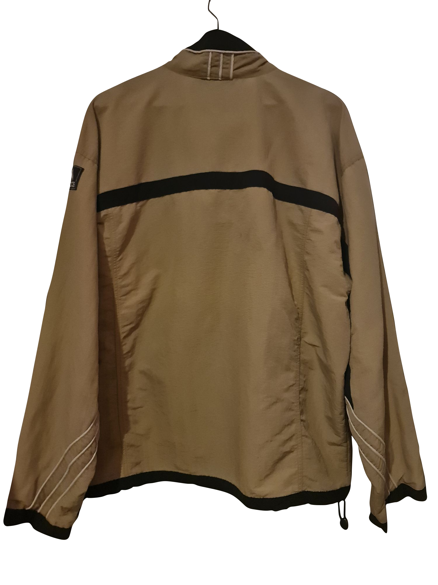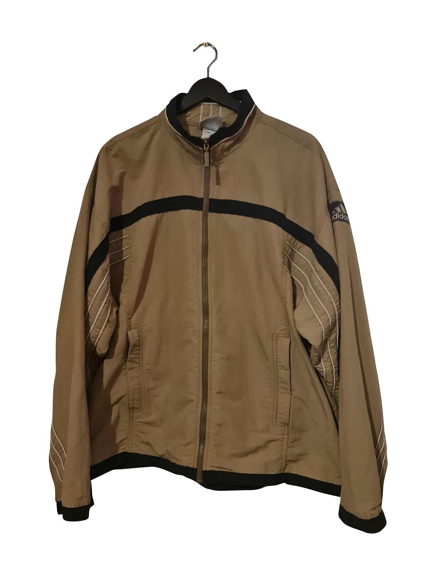 Diese Vintage Adidas Track Jacket (3XL) vereint sportlichen Stil mit hochwertiger Verarbeitung. Das strapazierfähige Material, der durchgehende Reißverschluss und der Stehkragen sorgen für einen klassischen Look. Die Adidas-Streifen an den Ärmeln und das Logo am Ärmel runden das Design ab.