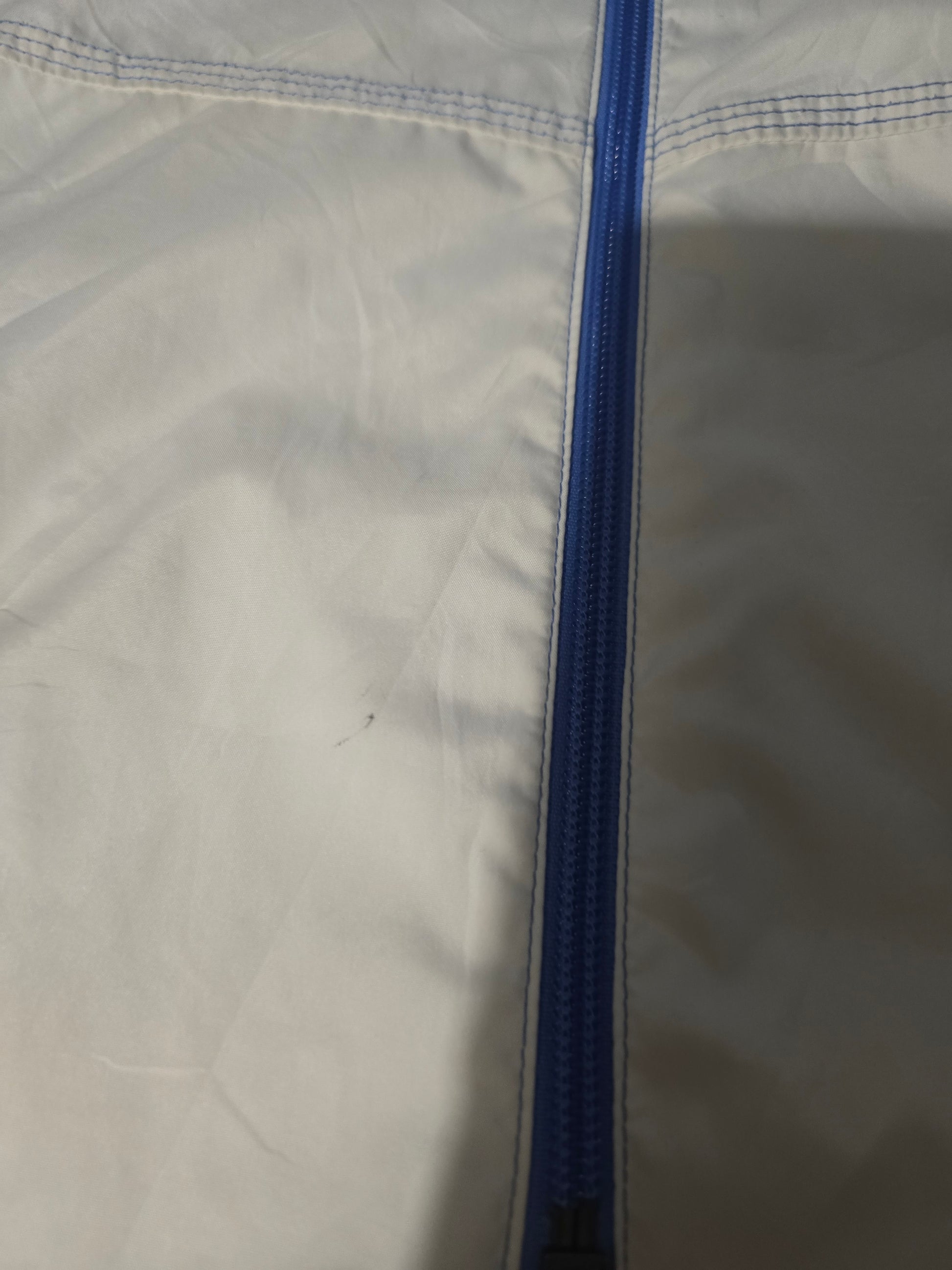 🔹 Details: Vier Logos (Brust, Rücken, Ärmel, Saum), durchgehender Reißverschluss, Kapuze mit Kordelzug, elastische Ärmelabschlüsse, klassische Streifendetails