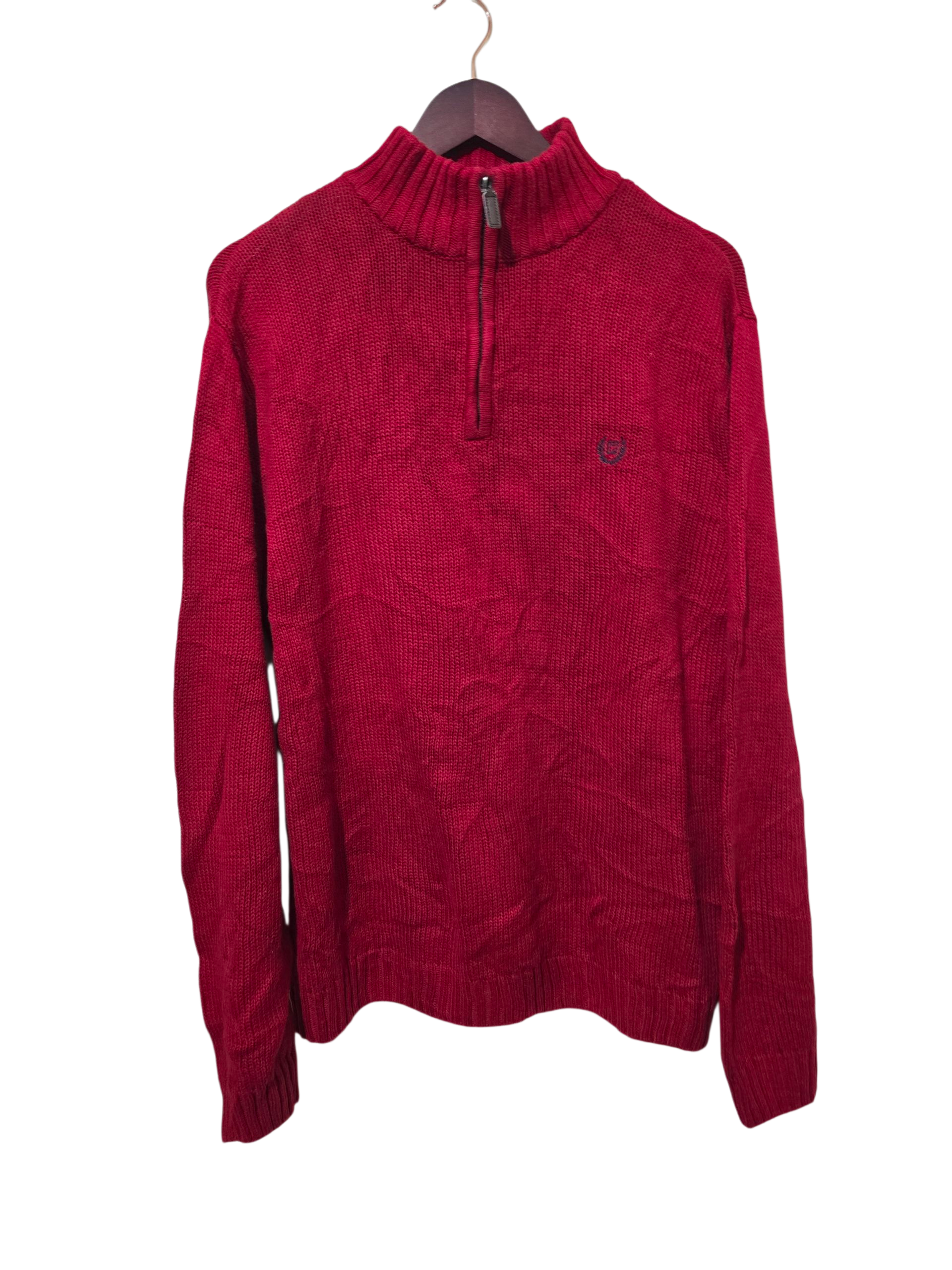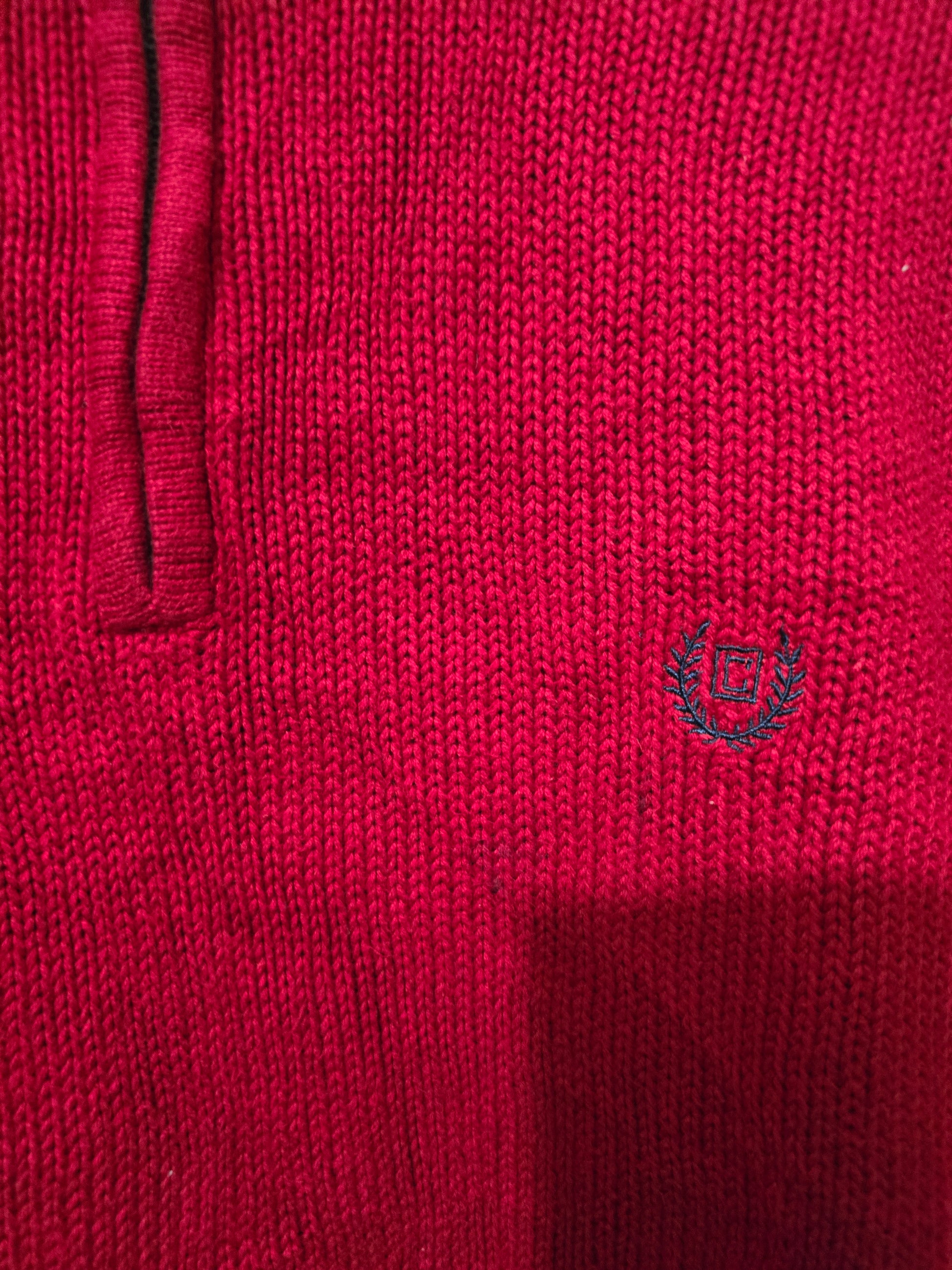 Klassischer Chaps Pullover in kräftigem Rot mit Half-Zip-Kragen und kleinem Logo-Stick auf der Brust. Angenehmer Baumwollstrick mit leichtem Retro-Vibe – ideal für die Übergangszeit und den Alltag.
