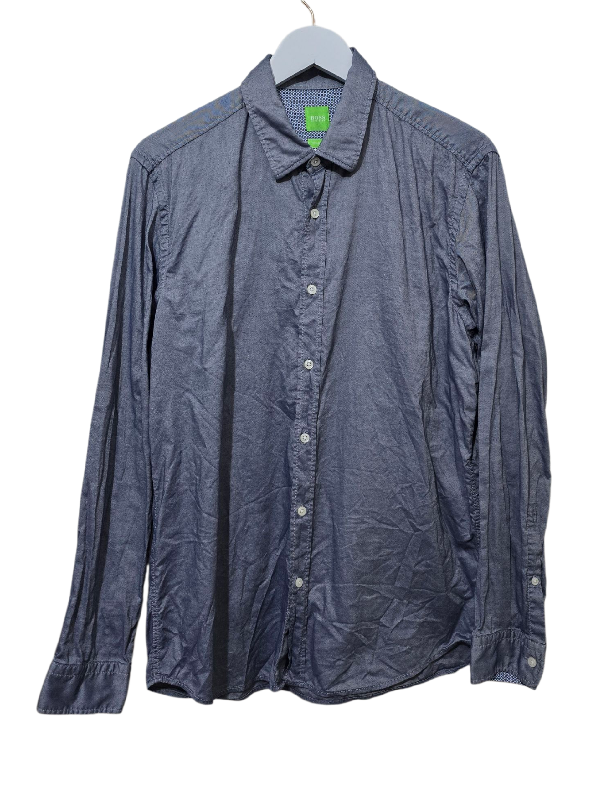 Schlichtes blaues Langarmhemd von Hugo Boss in Comfort Fit. Minimalistisches Design mit klassischem Kragen und Knopfleiste, ideal für Business oder Freizeit.