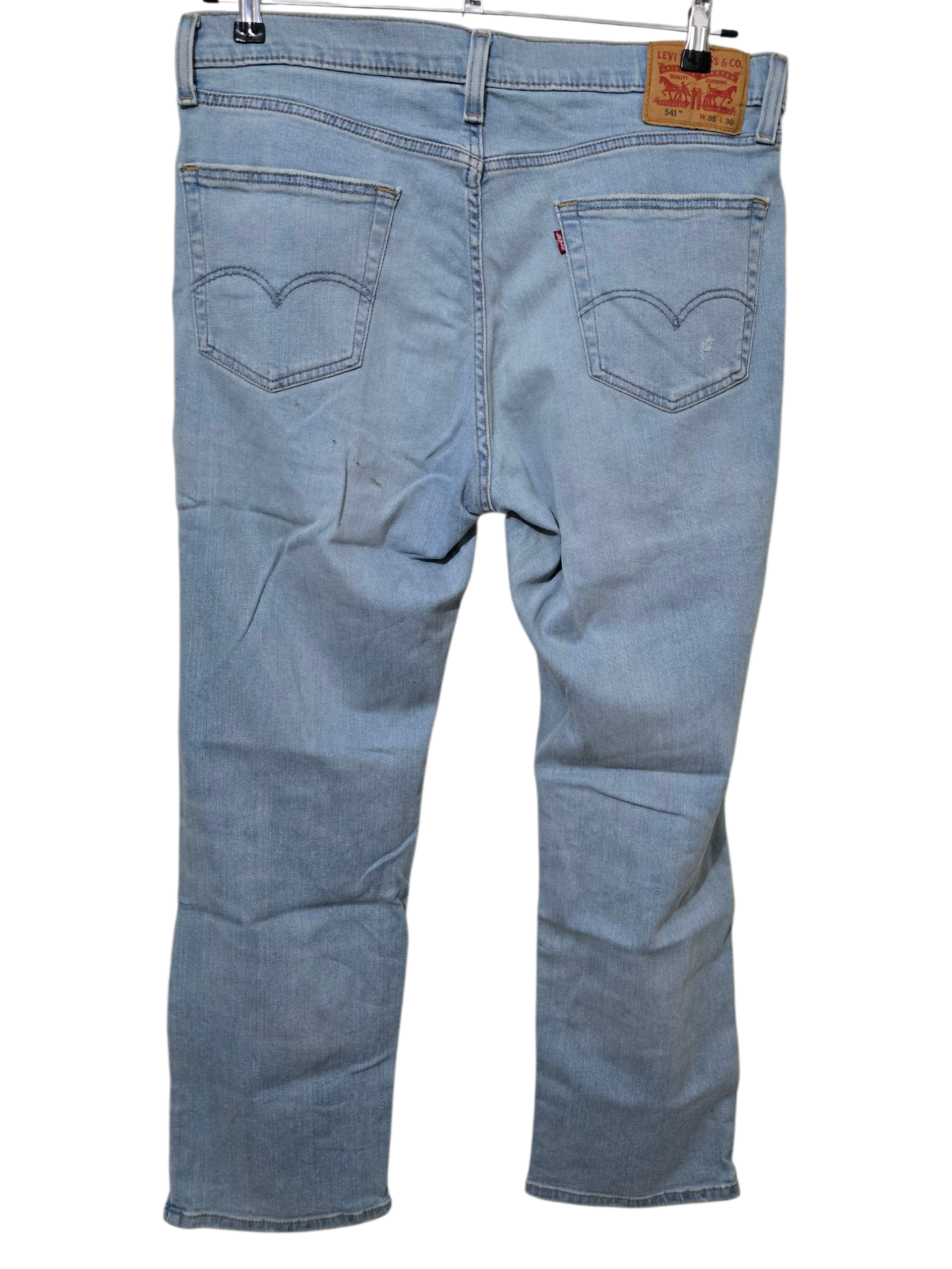 Gebrauchte Levi’s 541 Jeans in hellblauer Waschung mit Stretch-Anteil. Klassischer Five-Pocket-Style mit deutlichen Destroyed-Details.