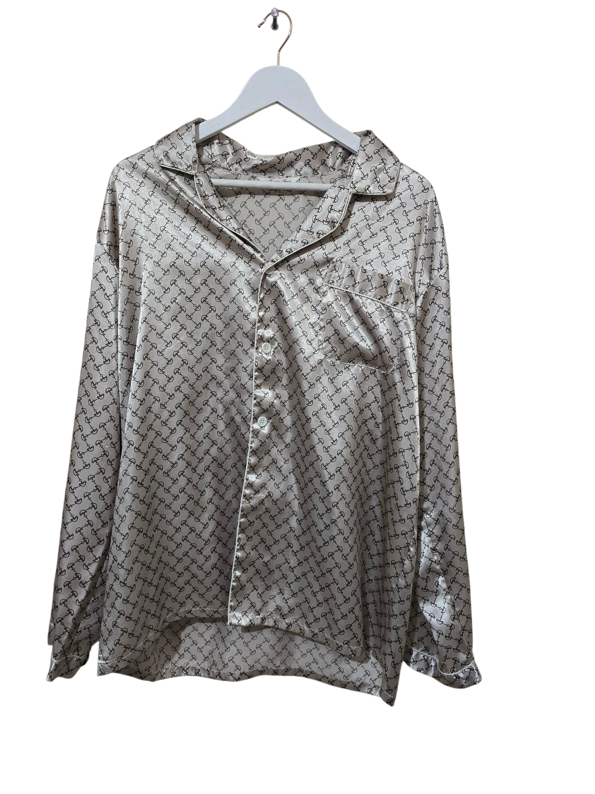 Edles Satin-Hemd von Moon Face Fashion – glänzend, weich und mit Allover-Muster. Perfekt für elegante Outfits, Vintage-Styles oder auffällige Party-Looks.