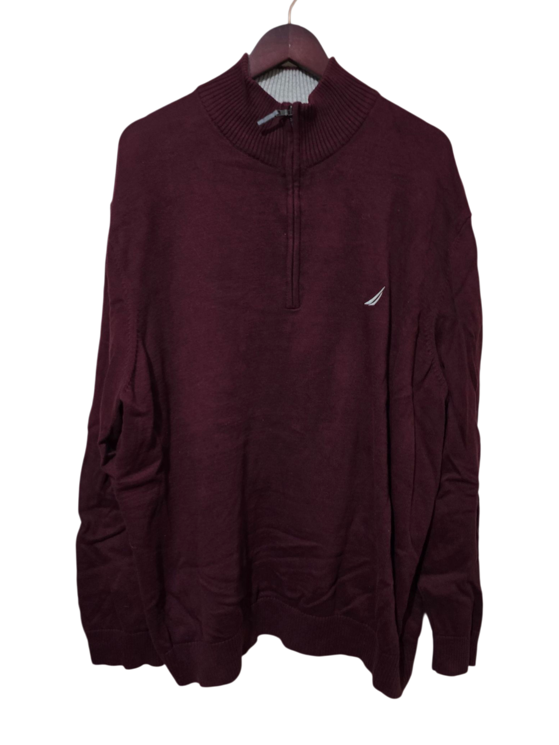 Edler Nautica Strickpullover in tiefem Bordeauxrot mit klassischem Half-Zip-Kragen. Weicher Baumwollstrick und hochwertiges Finish verleihen diesem Pullover einen eleganten, zeitlosen Look – perfekt für Freizeit, Büro oder Übergangszeit.