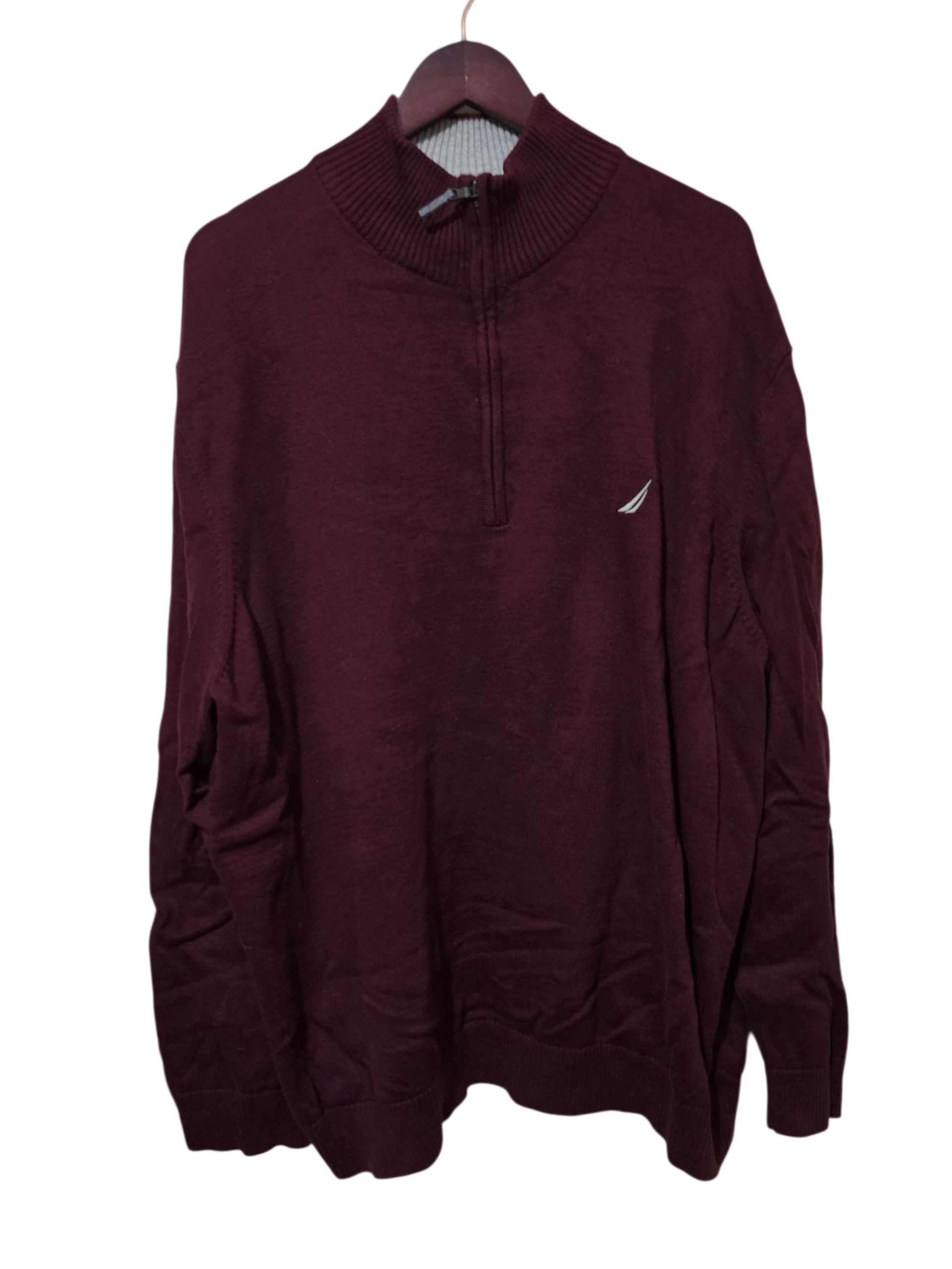 Klassischer Nautica Half-Zip Strickpullover in edlem Bordeauxrot. Zeitloser Look mit kleinem Logo-Stick auf der Brust – ideal kombinierbar und perfekt für den Alltag oder cleanen Vintage-Style.