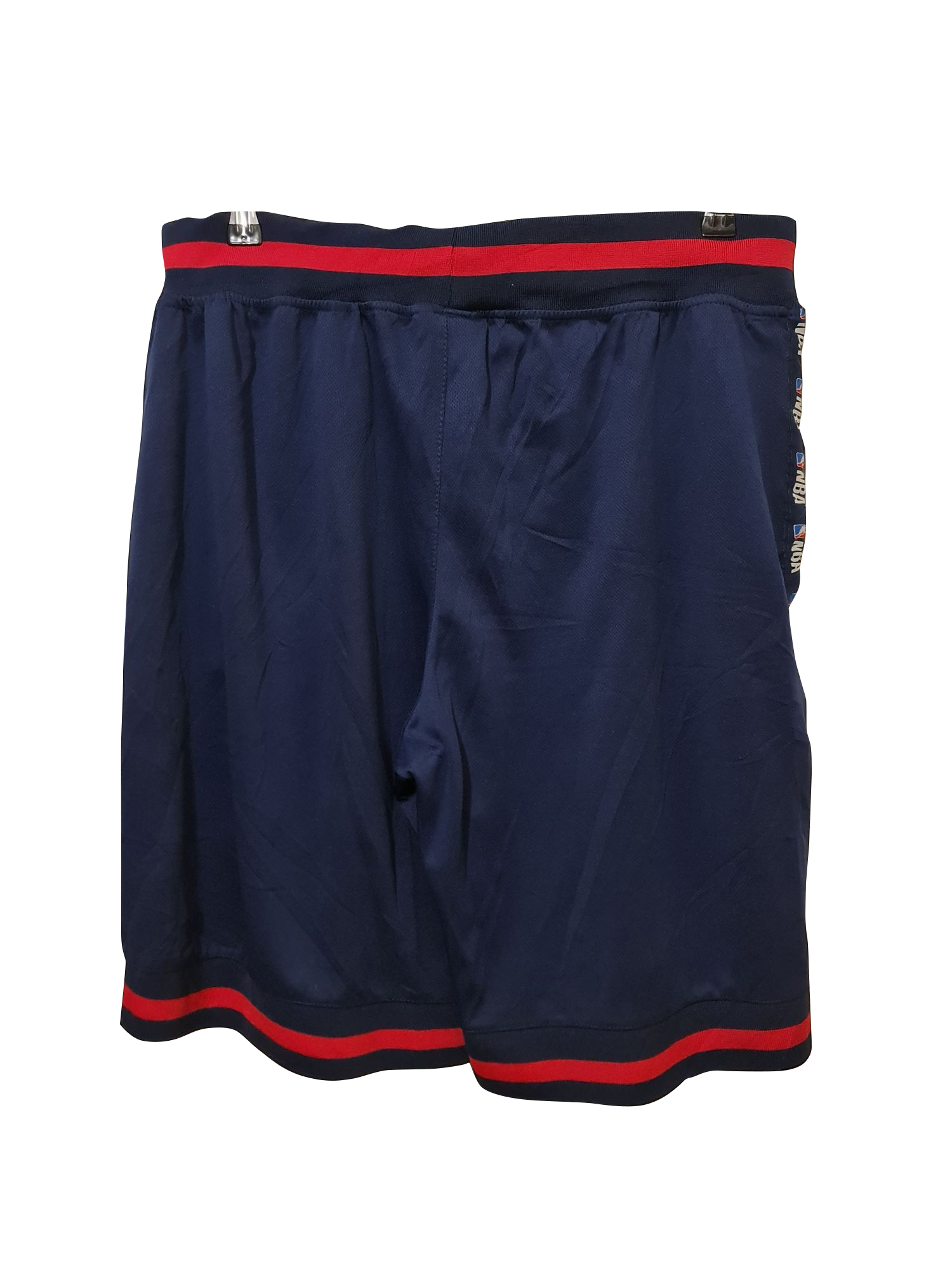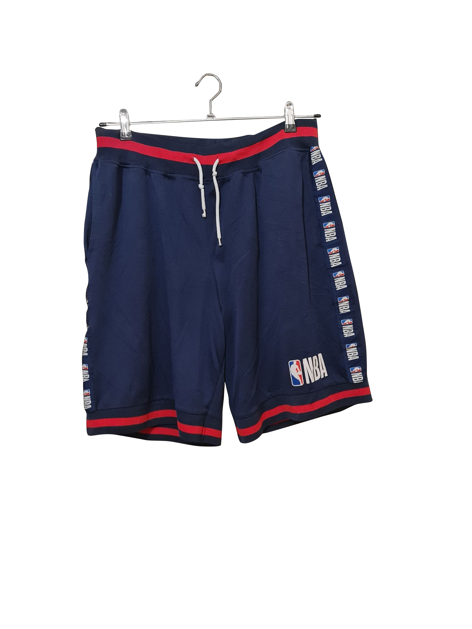 Sportliche NBA-Shorts in klassischem Navy mit roten Akzenten und Logo-Tape an den Seiten. Der lockere Schnitt, der bequeme Gummibund mit Kordelzug und das atmungsaktive Material machen sie perfekt für Sport oder entspannte Tage. Der NBA-Schriftzug ist vorne groß platziert, seitlich ziehen sich kleine Logos entlang – auffällig, aber trotzdem clean.