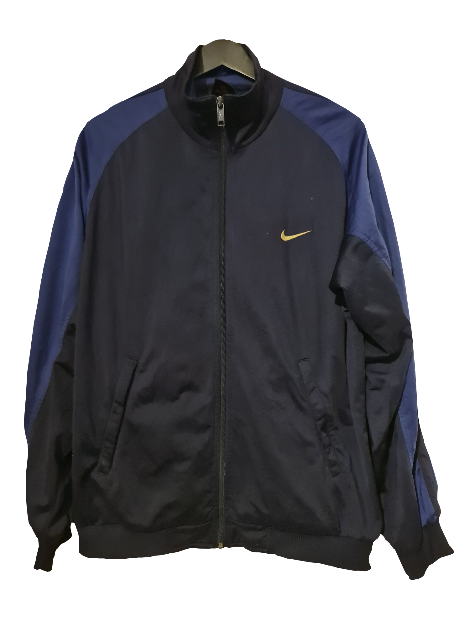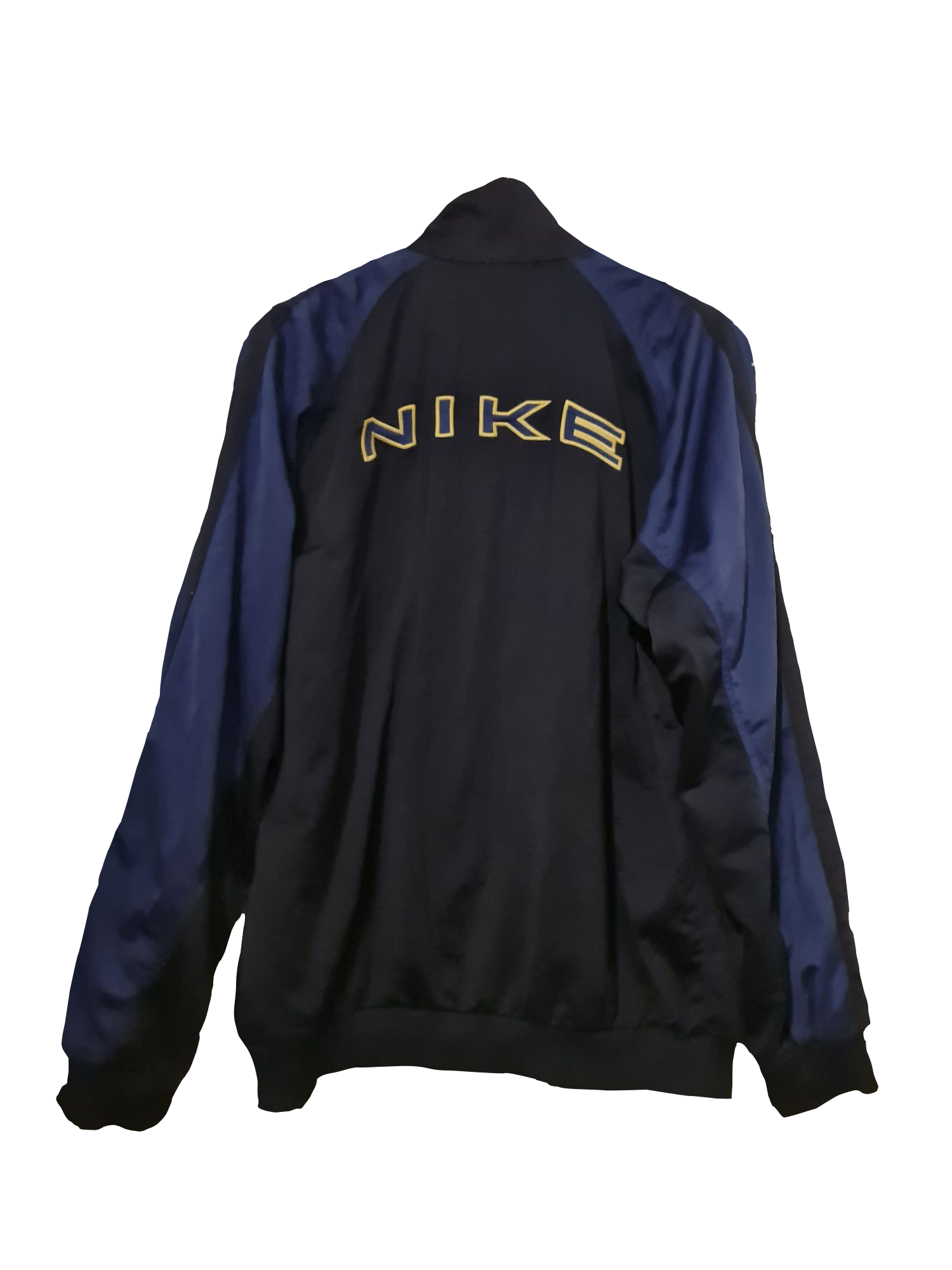 Klassische Nike Trainingsjacke mit sportlichem Retro-Charakter. Der große Nike-Schriftzug auf dem Rücken und die gelben Akzente verleihen der Jacke ihren typischen 2000er-Look. Ideal für Sport, Freizeit oder als Statement-Piece im Alltag.