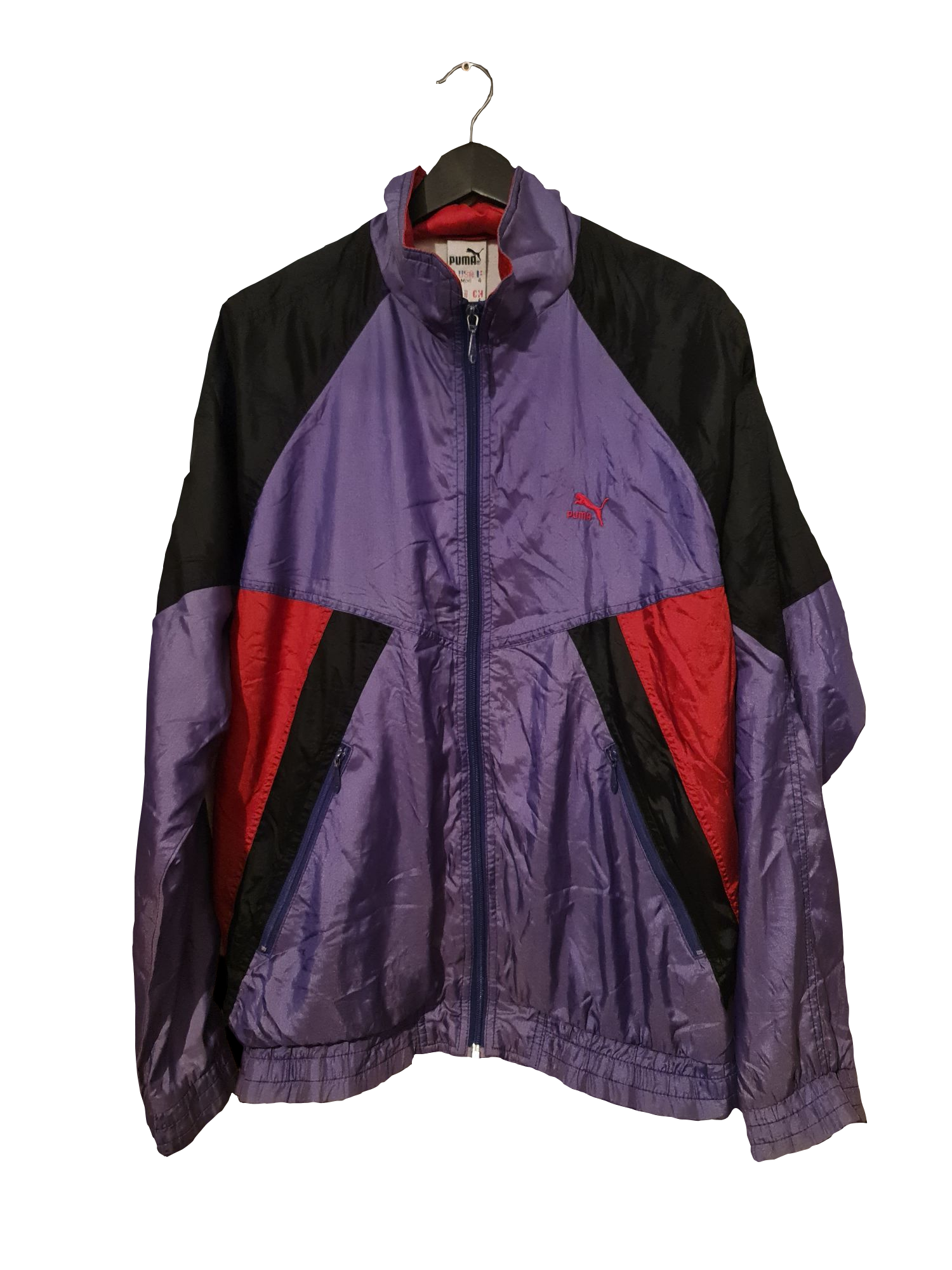 Typischer 90s-Look: Diese Puma Vintage Trainingsjacke kombiniert ein kräftiges Farbblock-Design mit klassischem Schnitt. Ideal für sportliche Retro-Looks oder als auffälliges Streetwear-Statement.