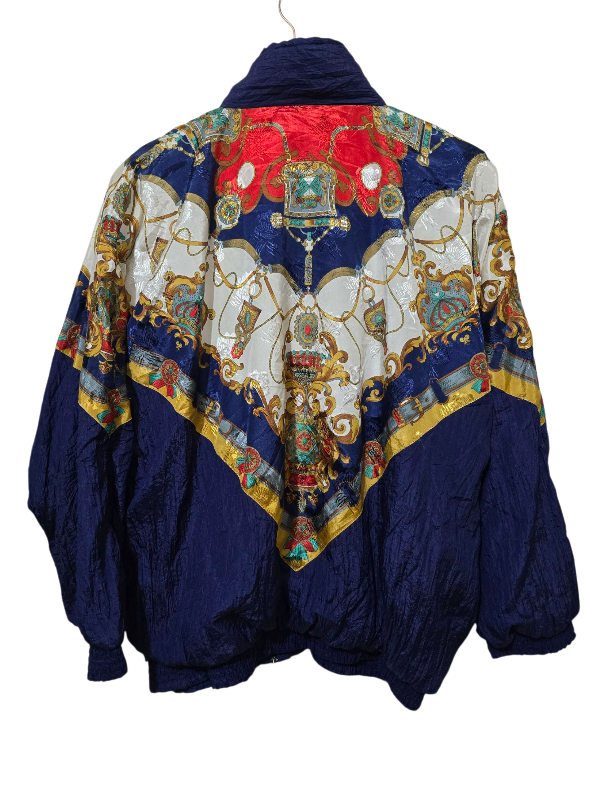 🔹 Details: Barocker Allover-Print in kräftigen Farben, inspiriert von klassischem Luxus. Reißverschluss vorne, elastischer Bund und Bündchen für optimalen Sitz.