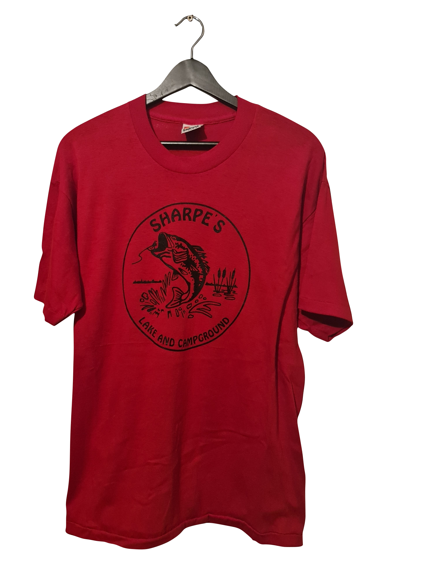 90s Signal Vintage T-Shirt "Sharpe's Lake & Campground" – Rot | XL