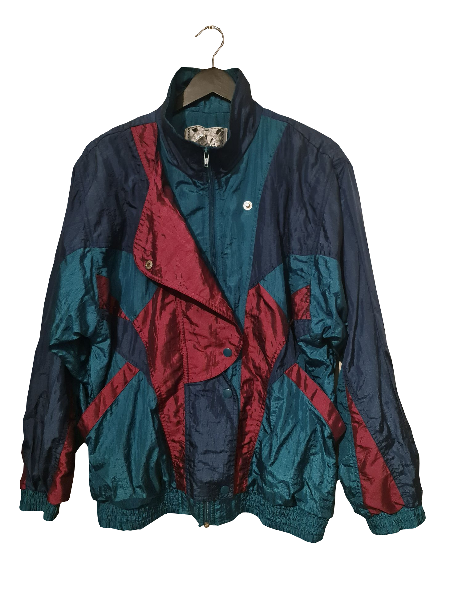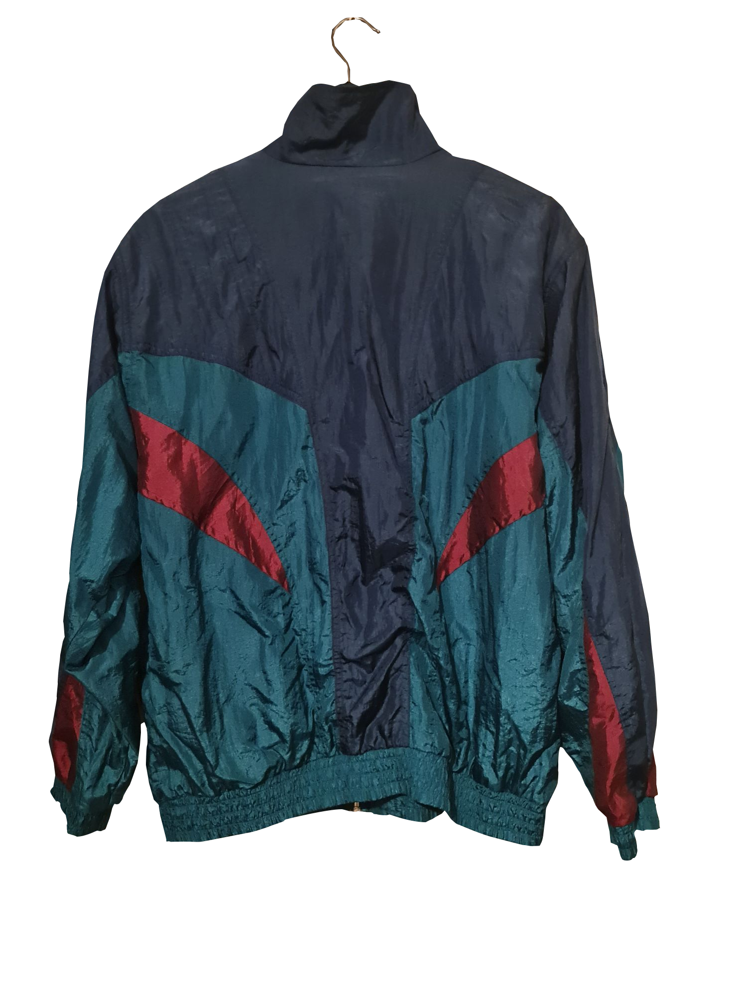Dieser Vintage Windbreaker von SUNTERRA bringt das typische 90er-Jahre-Design mit seinen markanten Farbblöcken in Blau, Grün und Rot zurück. Die leichte Nylon-Oberfläche sorgt für einen angenehmen Tragekomfort und macht die Jacke ideal für den Alltag oder sportliche Aktivitäten.