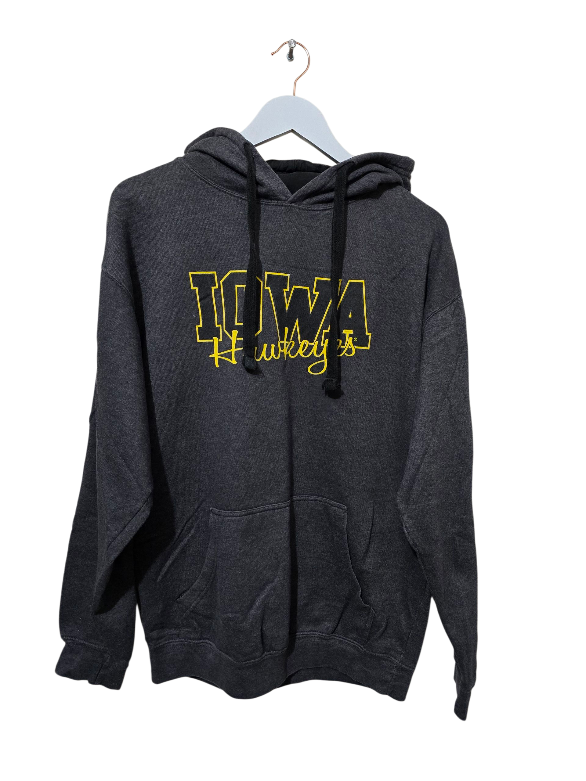 Dunkelgrauer Iowa Hawkeyes Hoodie aus den 2010ern im klassischen College-Look. Weicher Stoff, bequeme Passform und ein schöner Oversized-Fit – perfekt für lässige Outfits.