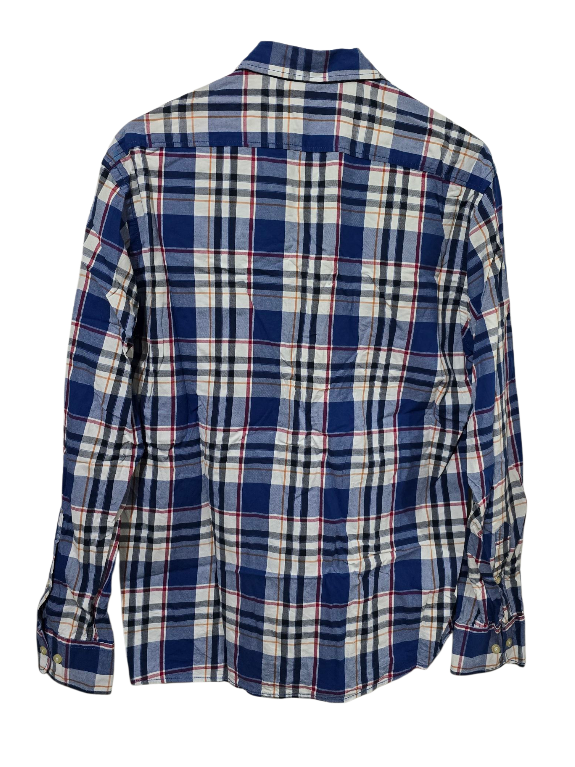 Klassisches kariertes Baumwollhemd in Blau, Weiß, Beige und Rot von Warstone. Zeitloses Regular-Fit-Design mit zwei Brusttaschen – vielseitig kombinierbar und ideal für Alltag und Freizeit.